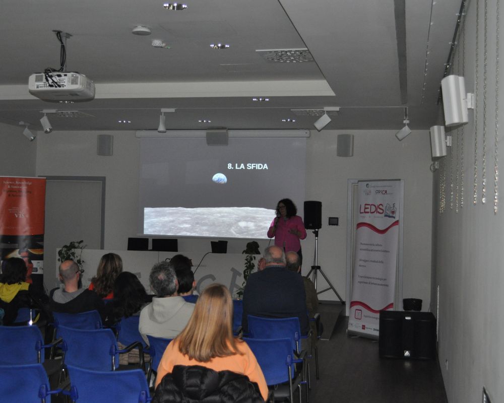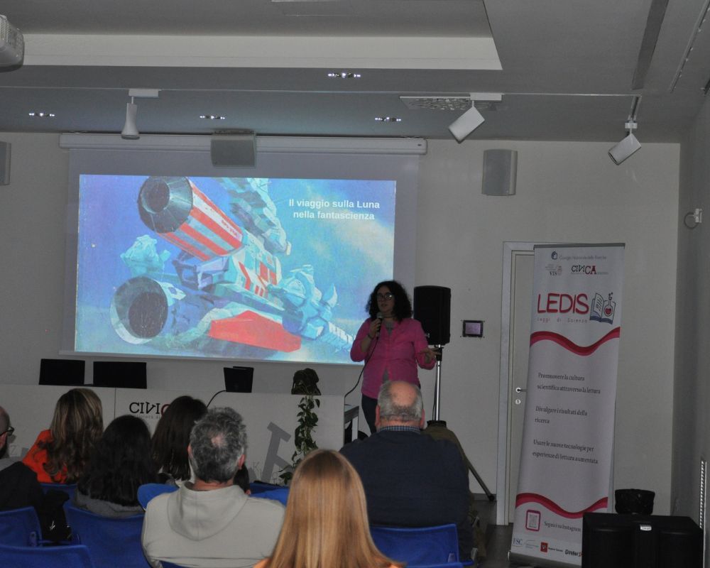L’evento condotto da Chiara D’Errico, del CNR-IBE e Marcos Valdes di VIS, ha portato gli spettatori in un viaggio attraverso la storia di come l’umanità ha guardato alla luna attraverso i secoli, tanto da un punto di vista scientifico che letterario, dagli antichi babilonesi al mondo arabo fino alla corsa allo spazio culminata con la missione Apollo 11 che per la primissima volta ha portato l’uomo sulla Luna. Ma si guarda anche al futuro, con Artemis e la fantascienza che ha sempre immaginato la Luna come una seconda casa rispetto alla Terra, fatta di città e avamposti.