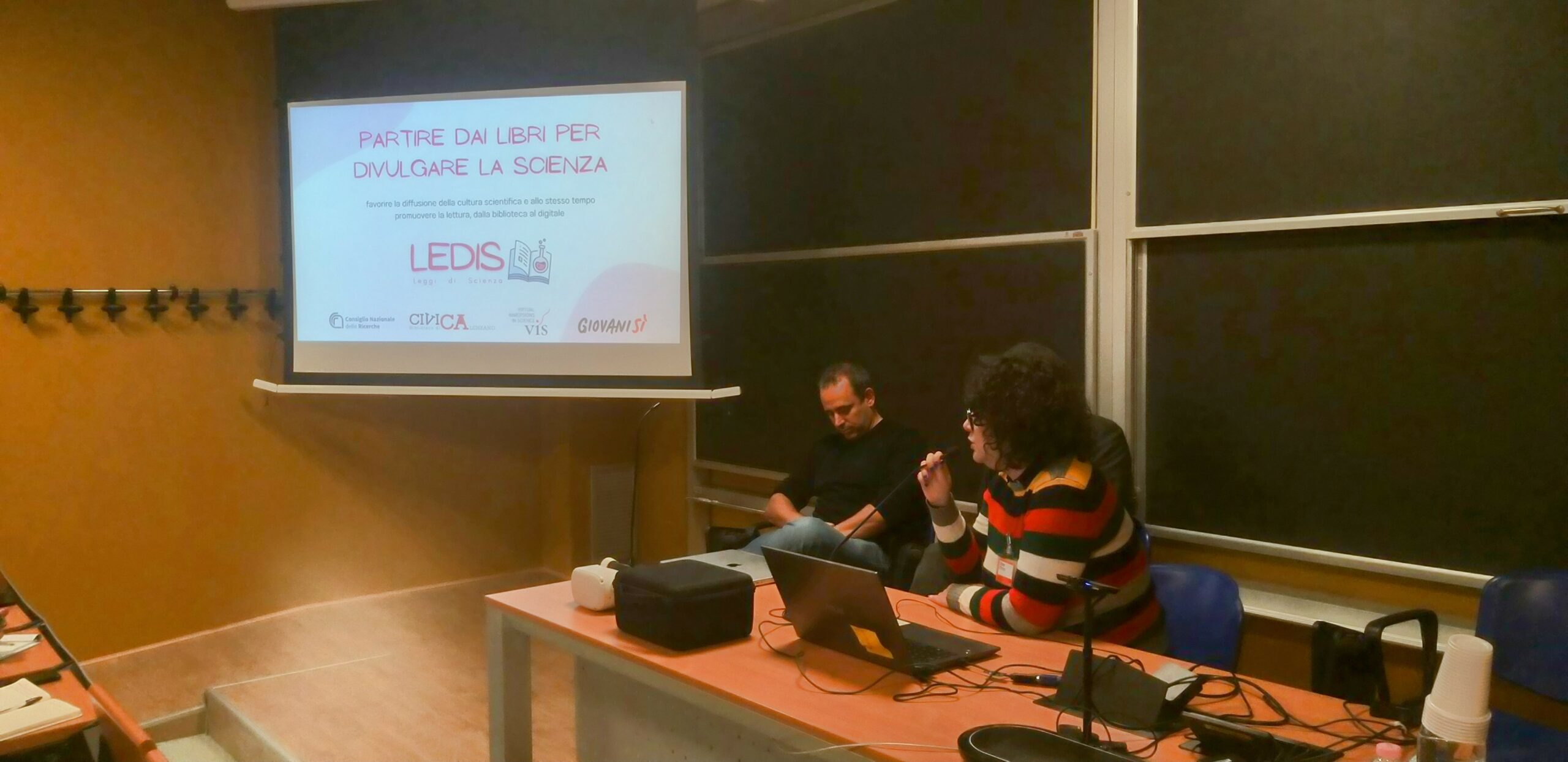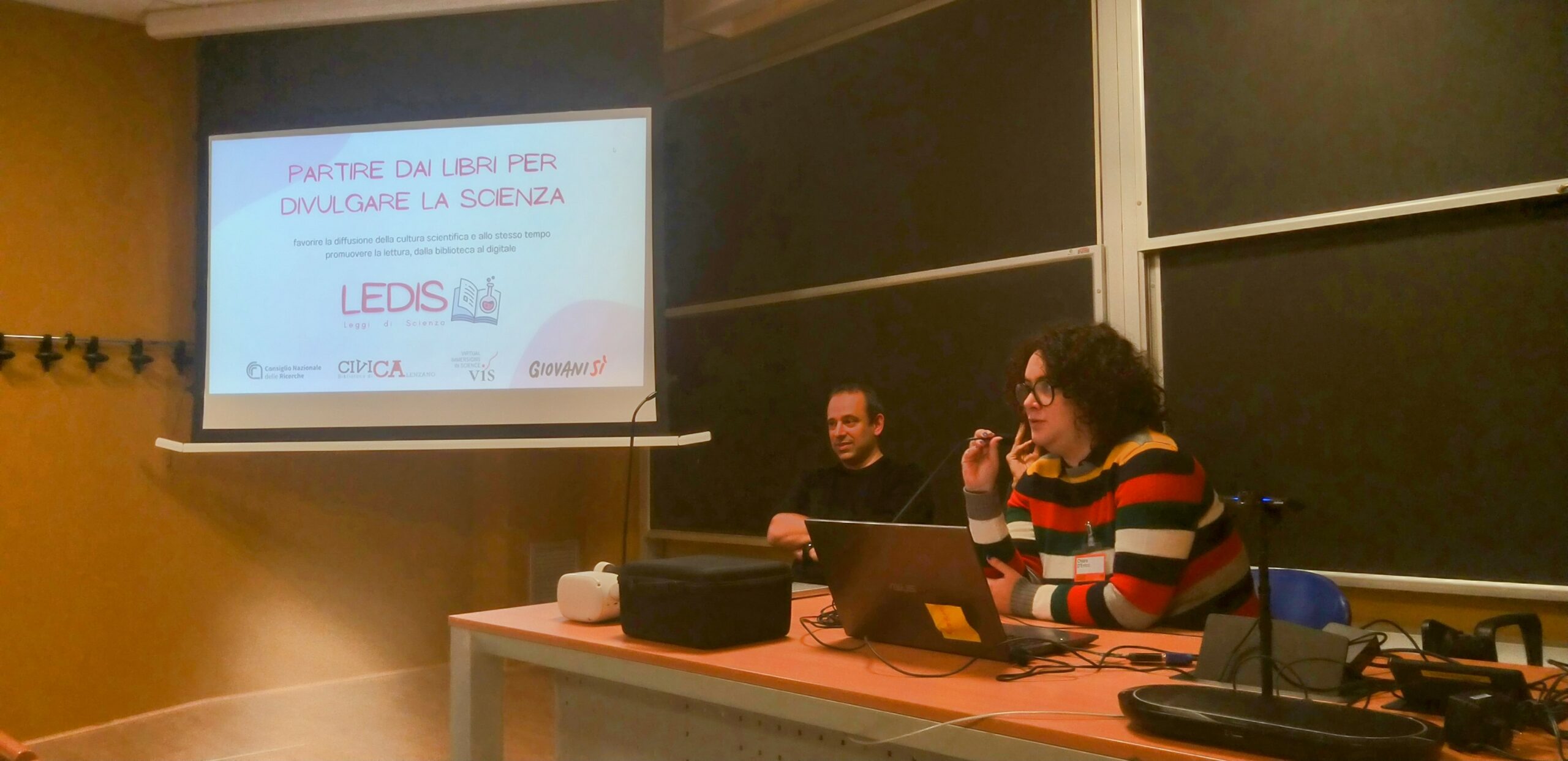 In un programma di eventi molto fitto, anche il progetto LeDiS è stato presente al convegno, il giorno 30 Novembre, nel panel dedicato alla comunicazione della scienza attraverso nuovi mezzi digitali e non dal titolo Immergersi nella scienza: la realtà virtuale per immaginare e sensibilizzare.